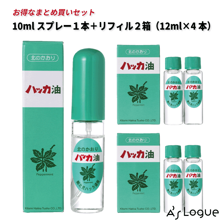 【39ショップでポイント5倍】《送料無料》ハッカ油セット 10ml スプレー + 20ml 詰替用ボトル × 2セット [北見ハッカ通商]